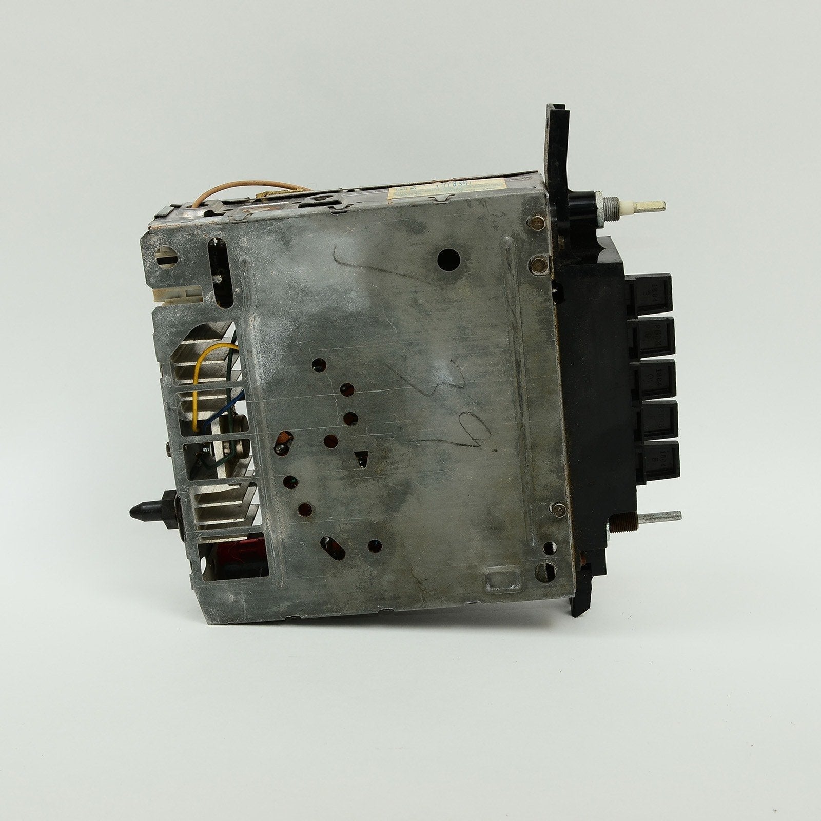 Used, untested - scuffs, scratches, some grime from previous use, storage and handling. Power control clicks and rotates freely. Tuning knob moves the tuning indicator as it should. Tuning buttons move the tuning indicator to different pre-set stations. We are not sure how to connect this for testing.