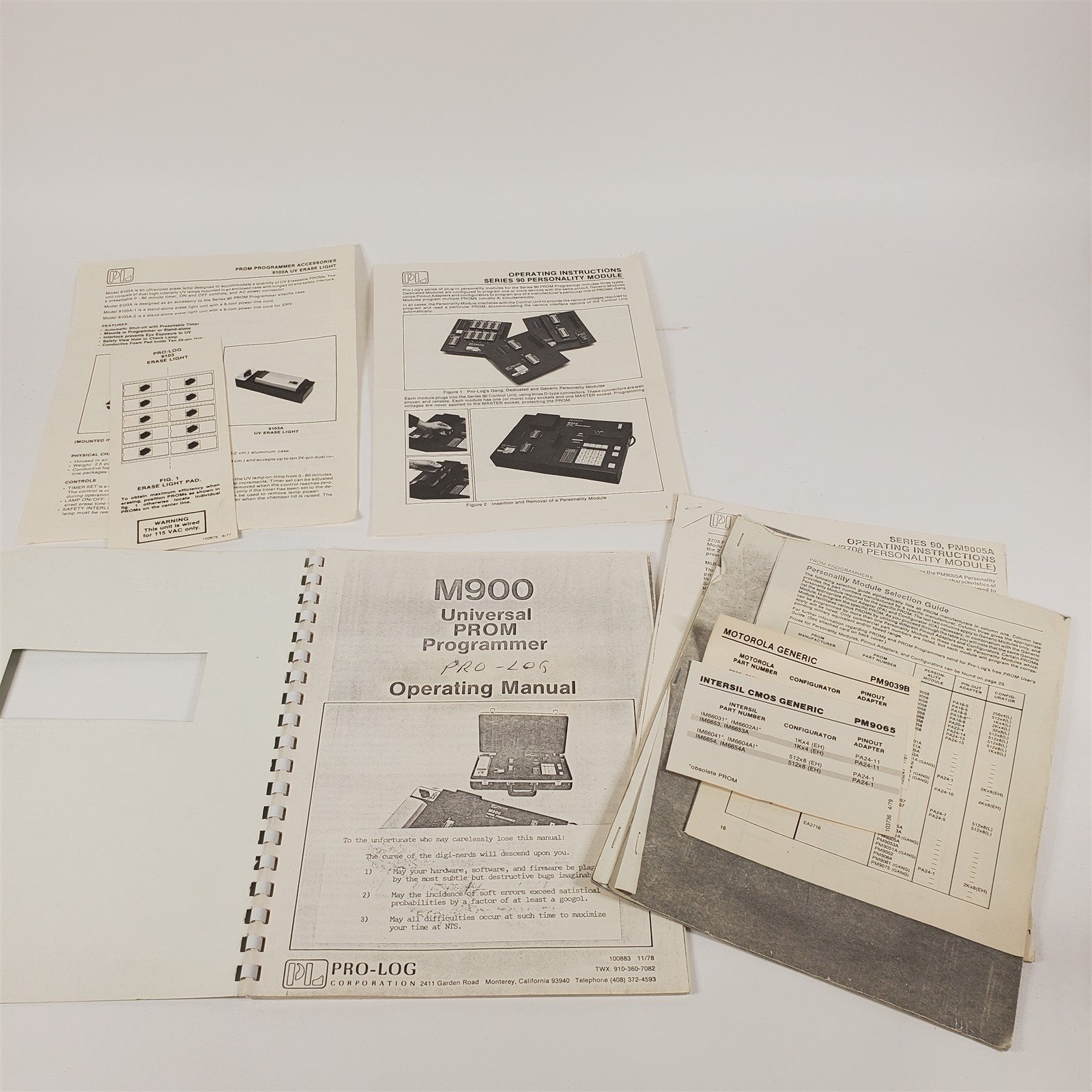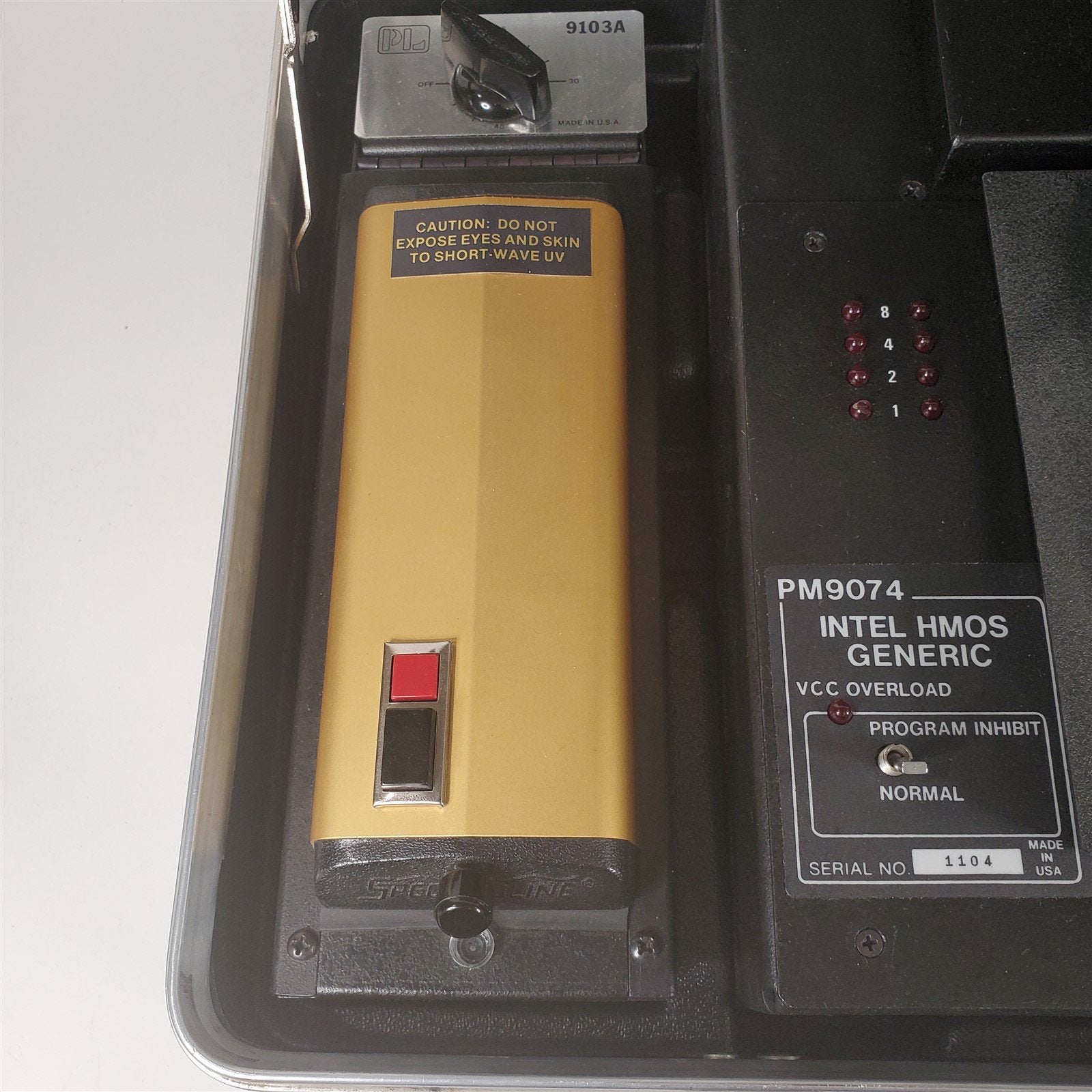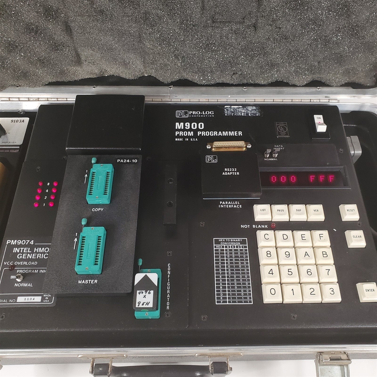 This listing is for a HTF Pro-Log M900 PROM Programmer, RARE PM9074 Intel HMOS Module, 9103A UV Erase
