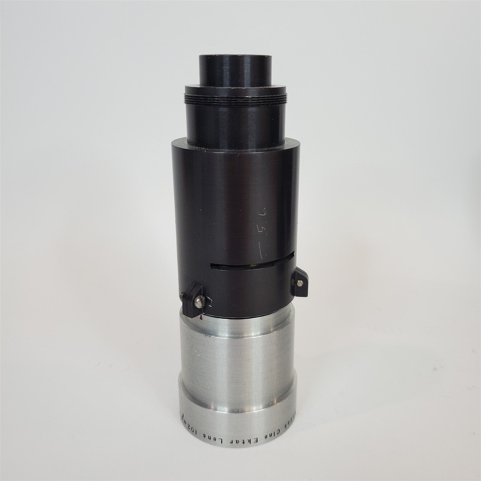 Aperture arm does not open up all of the way in its current housing. The mechanism is not seized, but there is not enough travel space. The housing collar may just need to be rotated. Okay optical condition with some haze, but no balsam separation fungus or other notable issues. The haze will have a minimal effect on image quality, similar to using a low grade mist filter.