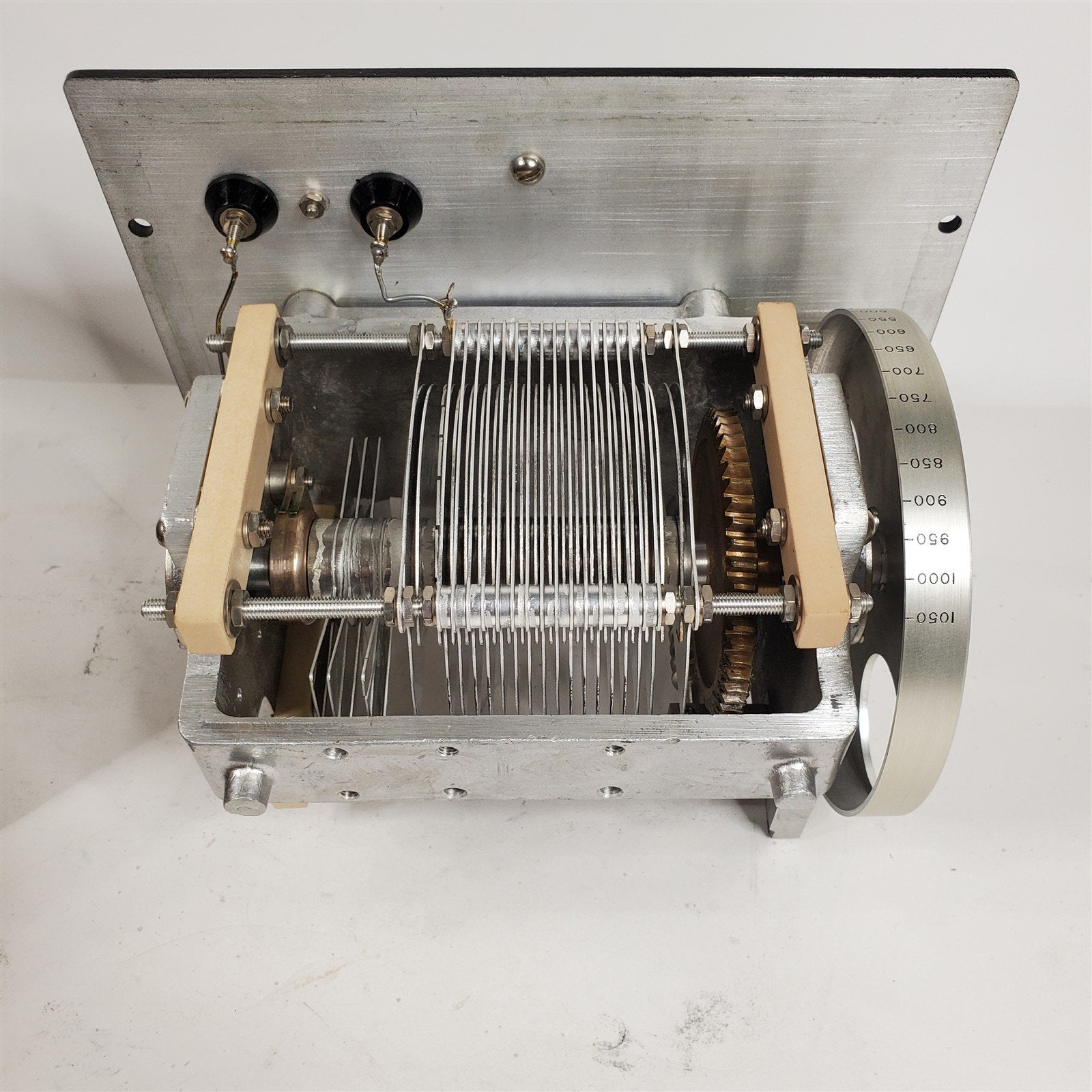 This unit has a pristine air capacitor that is mounted inside a Walnut base that is covered in sheet copper on the inside (see pictures).